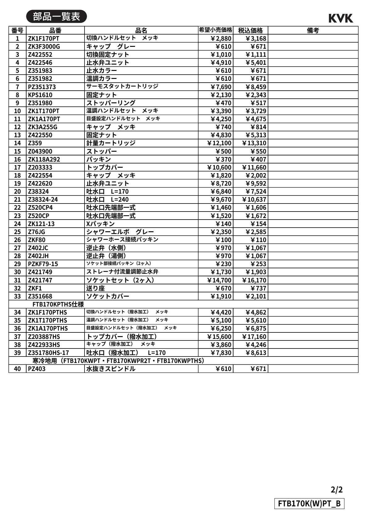 恒温淋浴水龙头 FTB170KPT