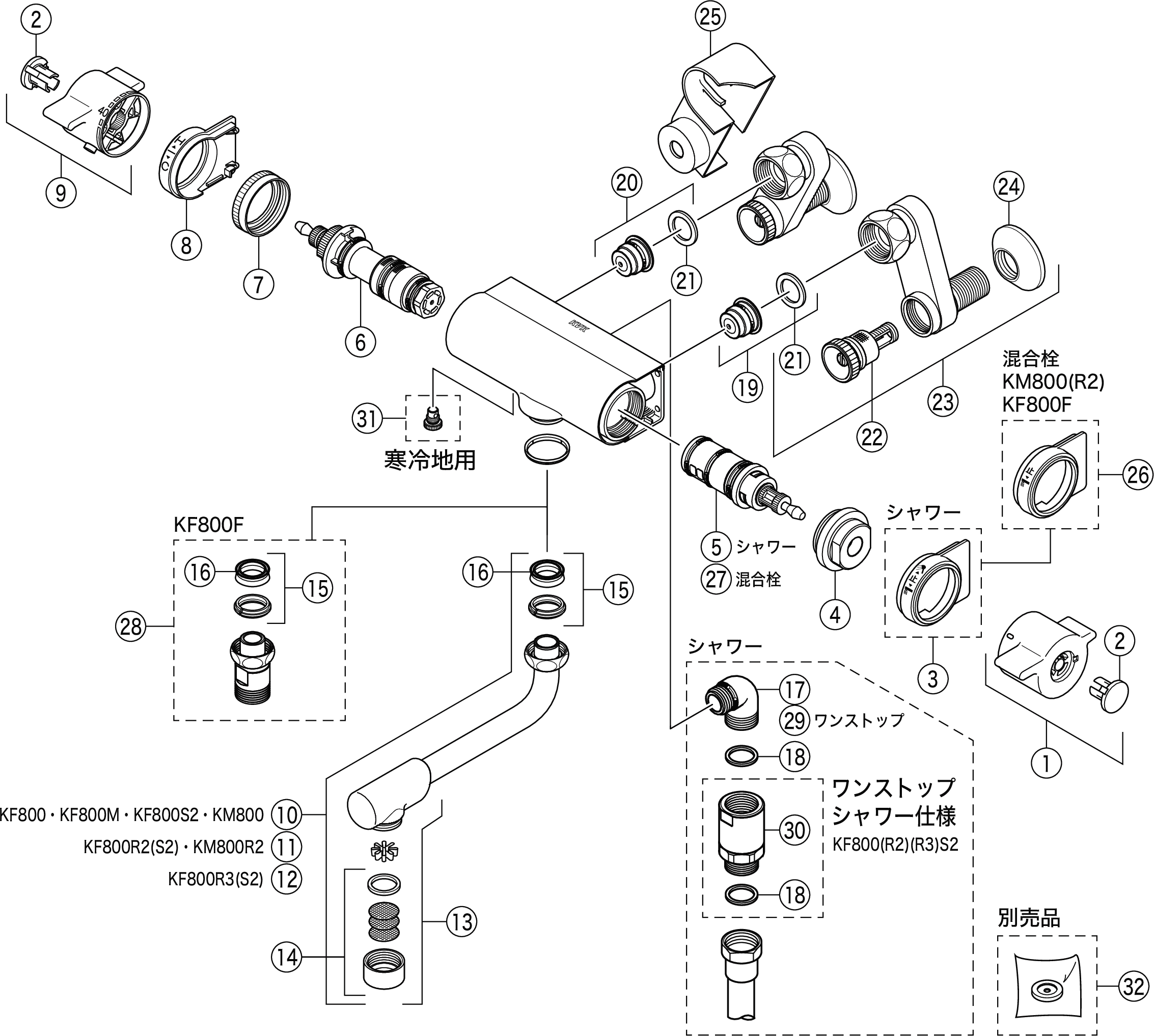 | 5 | PZ695A | 切换阀单元(KF:淋浴) |