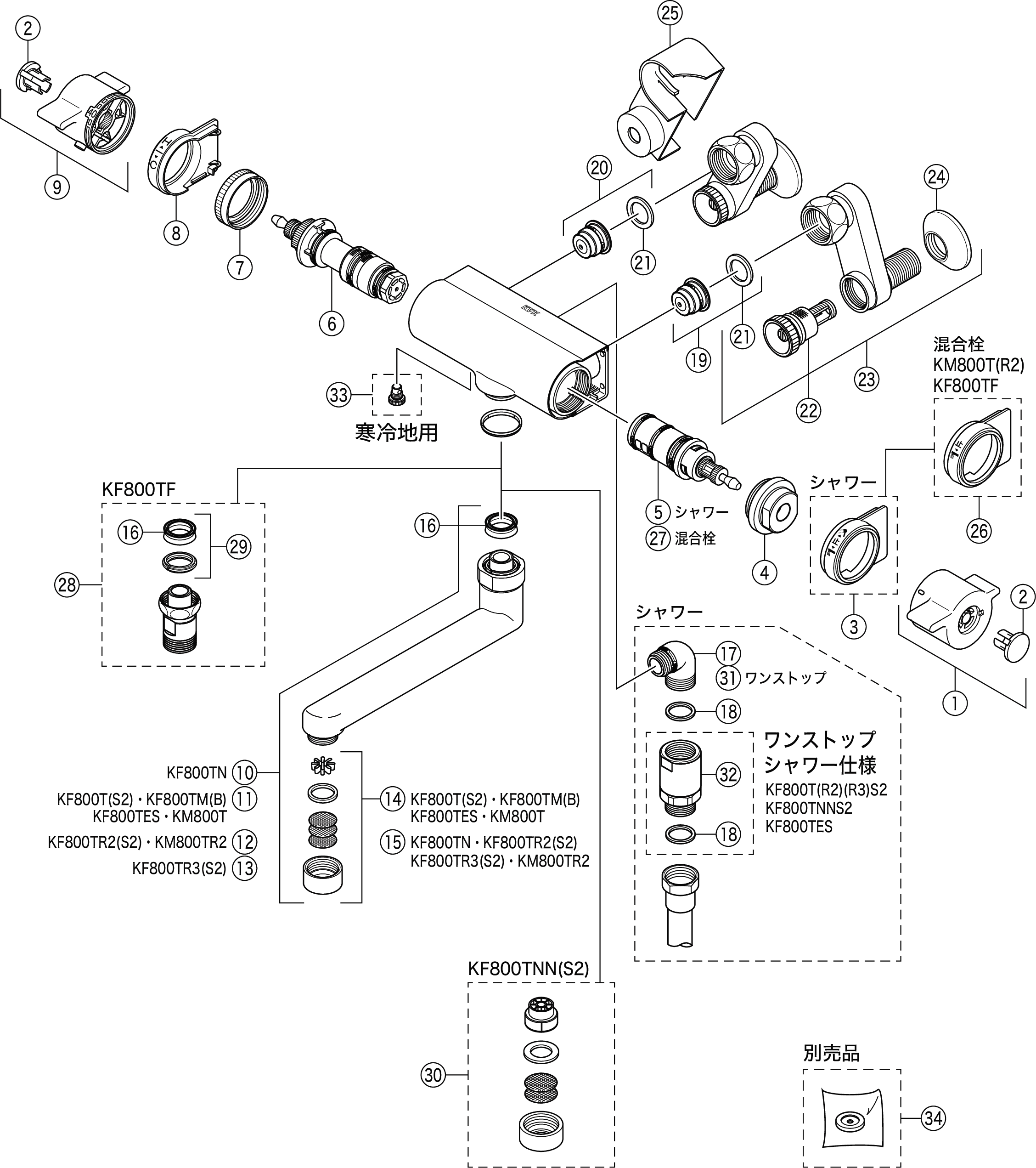 | 5 | Z695A | 临时止水切换阀单元(KF:淋浴) |